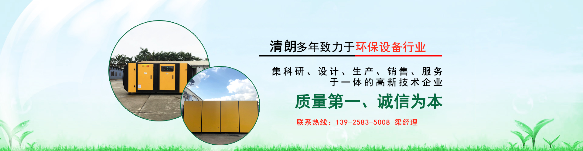公司始終堅持以質量第一、誠信為本的宗旨,努力為用戶提供先進、實用、完善的環保產品,提供及時、周到、優質的綜合服務。公司始終走科研、設計和生產相結合的道路,清朗環保與您一起共建碧水藍天,為我們賴以生存的家園和環保產業的發展盡一份微薄之力!